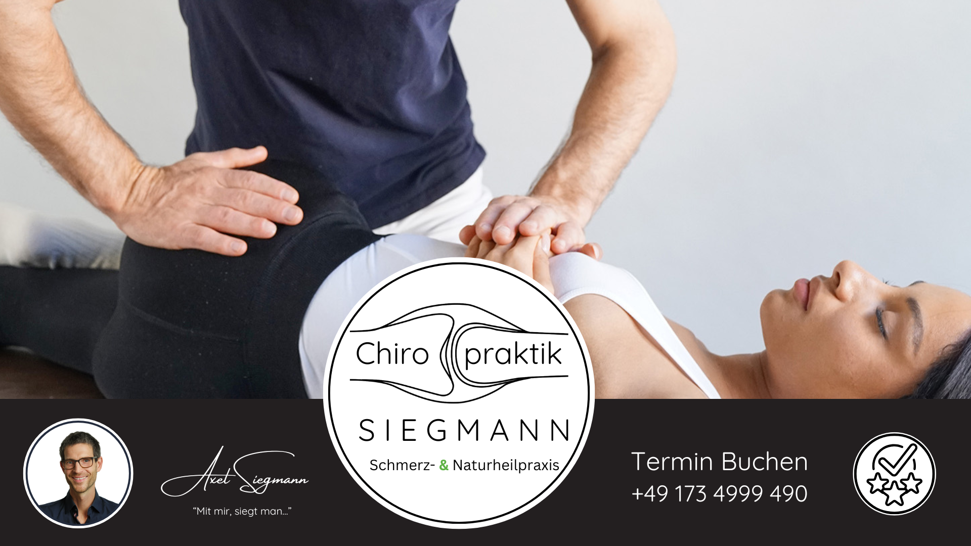 Die Chiropraktik Siegmann Schmerz- & Naturheilpraxis in Berlin bietet professionelle Chiropraktiker-Dienstleistungen an. Der erfahrene Therapeut Axel Siegmann ist ein qualifizierter Dipl. Sportwissenschaftler, Heilpraktiker und Therapeut für Chiropraktik. Die Praxis richtet sich an Privatversicherte, Selbstzahler und Heilpraktiker Zusatzversicherte, die unter akuten und chronischen Schmerzen des Bewegungsapparates leiden. Zu den angebotenen Leistungen gehören unter anderem Chiropraktik, Massage, Ernährungsberatung, Bandscheibenvorfallbehandlung, Behandlung von Rückenschmerzen, Behandlung bei Hallux-Valgus, Behandlung von Schulterschmerzen, Kopfschmerzbehandlung, Wirbelsäulenbehandlung, Faszientherapie, Infusionstherapie und Entgiftung. Die Praxis legt Wert auf ganzheitliche und sanfte alternativmedizinische Behandlungen, um die Ursachen für Beschwerden zu identifizieren und effektive Therapien einzuleiten. Axel Siegmann bietet umfassende Beratung, exakte Diagnose und individuelle Therapien zur Wiederherstellung der Beweglichkeit und Schmerzlinderung an. Die Praxis ist montags bis samstags geöffnet und bietet auch Behandlungen für Corona und Long Covid an.